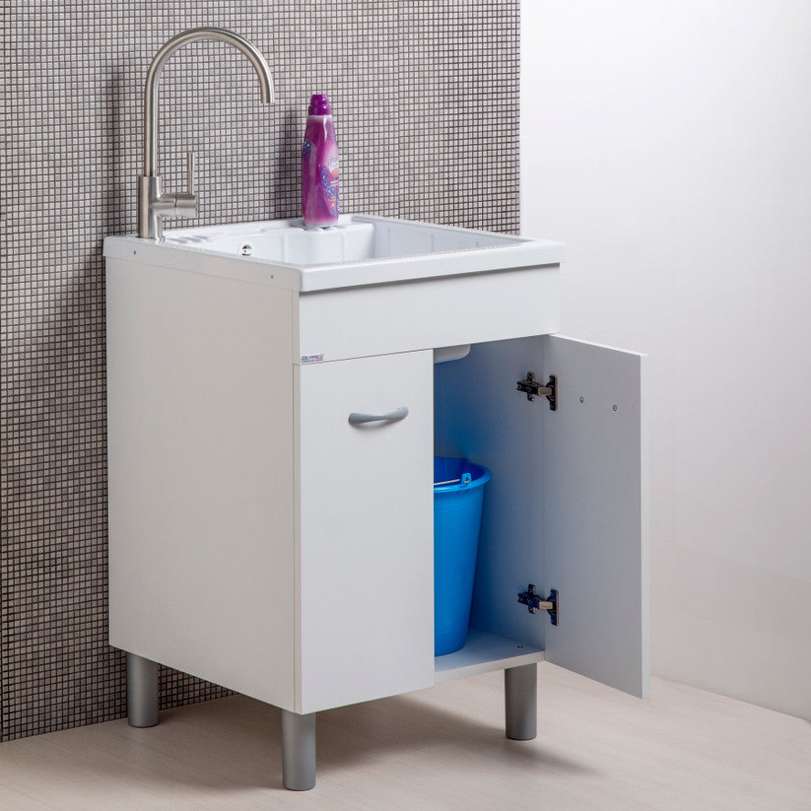Mobile lavanderia su piedini a due ante con vasca lavatoio in Abs rinforzato 60x60xh90 cm completo di:
