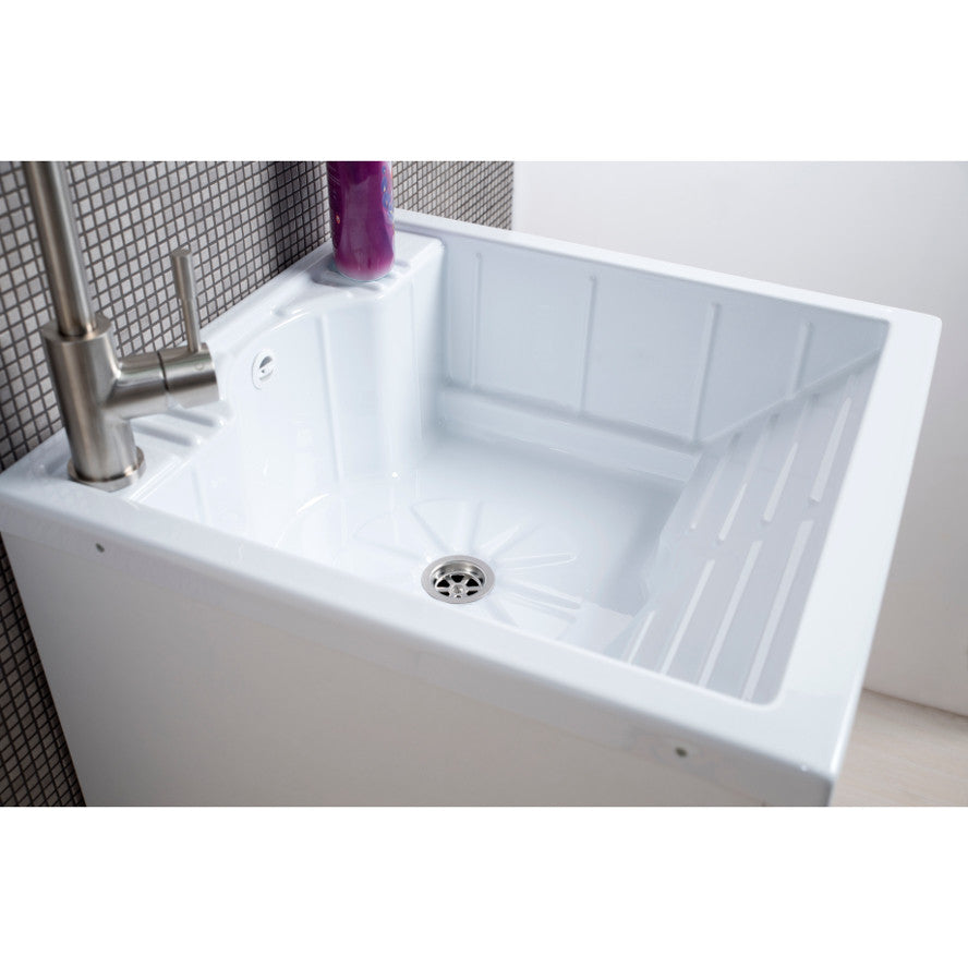 Vasca lavatoio in Abs Rinforzato colore bianco senza foro, predisposto per rubinetteria a parete o possibilità di forare la vasca.