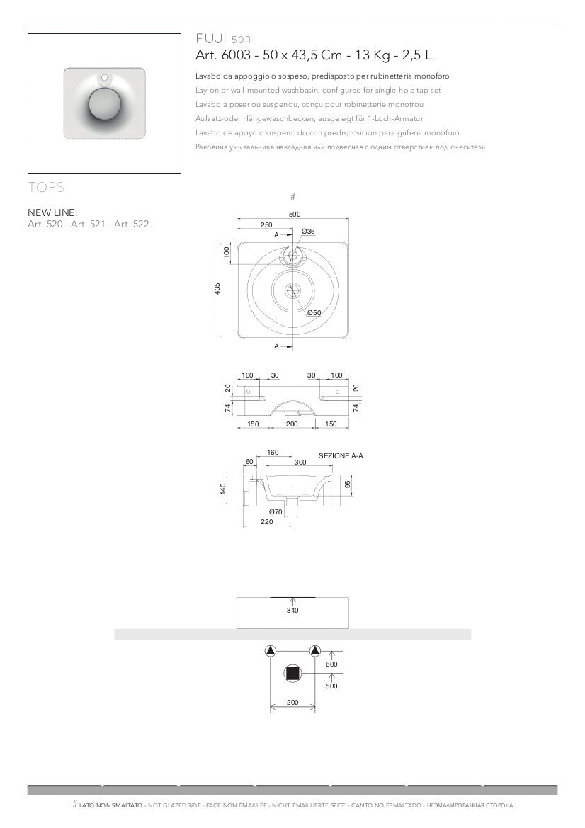 Il lavello Fuji è realizzato in ceramica bianca e presenta forme morbide sia esternamente che internamente alla vasca. Oltre a sostenere può essere installato anche sospeso.
