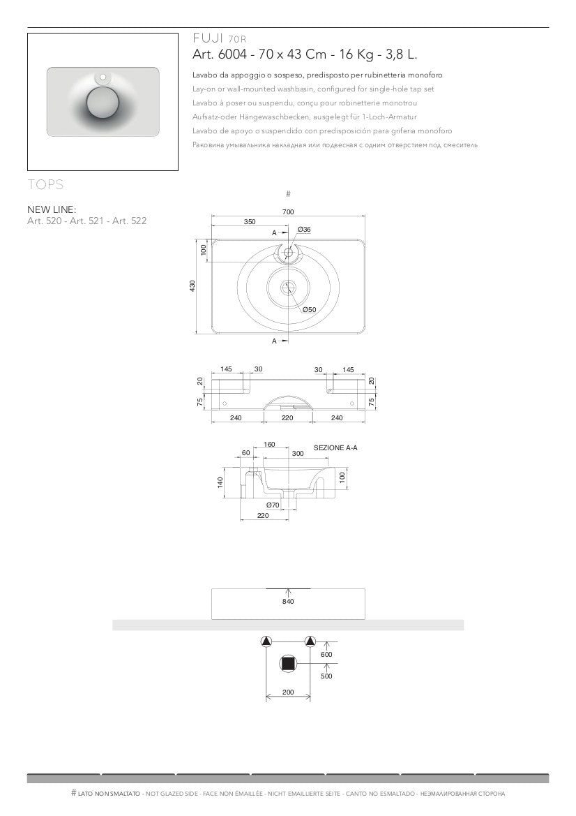 Dimensioni forma rettangolare : cm 71x43xH14 capacità 3.8 LT