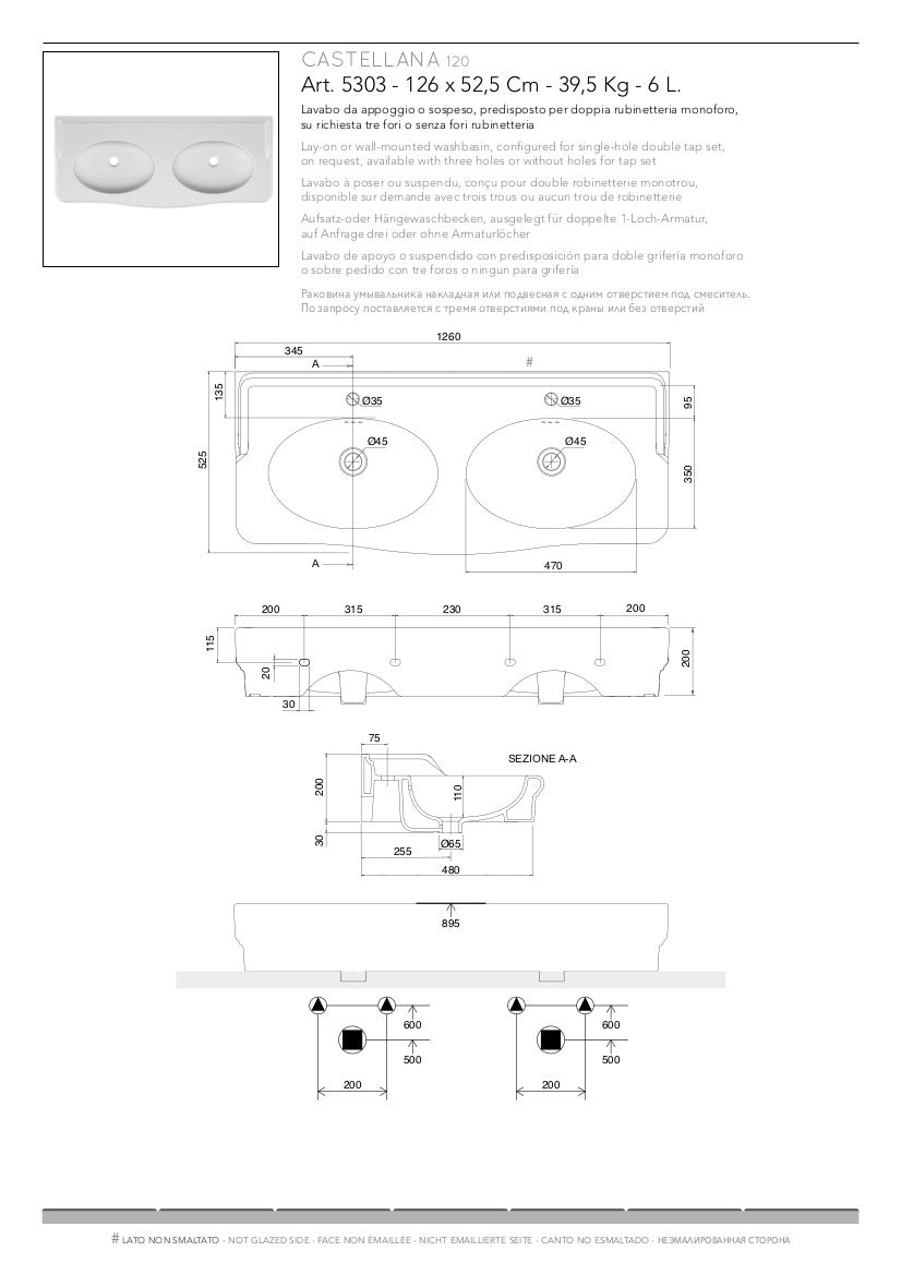 Lavabo da appoggio o sospeso doppia vasca Castellana5303