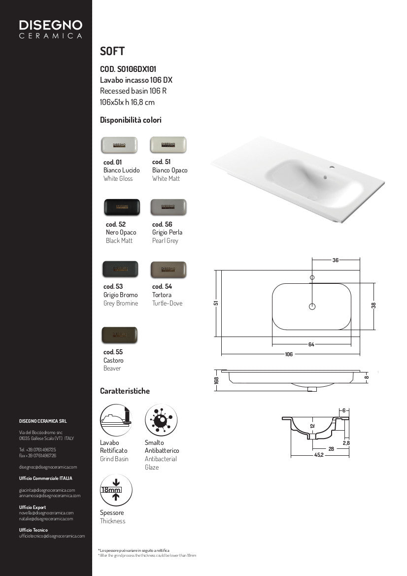 Lavabo da incasso con vasca a destra 106x51x h 16,8 cm Soft