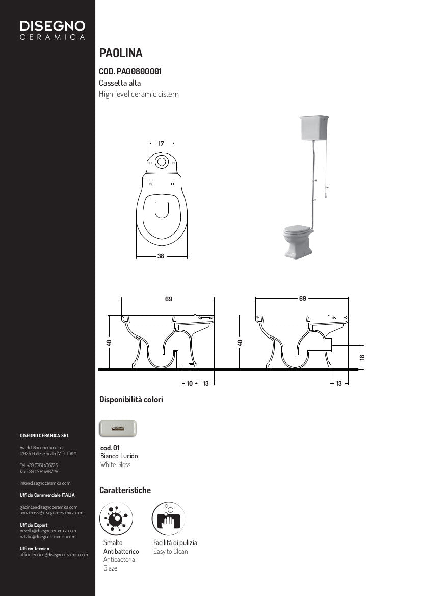 Cassetta alta realizzata in ceramica bianca lucida adatta alla serie Paolina.