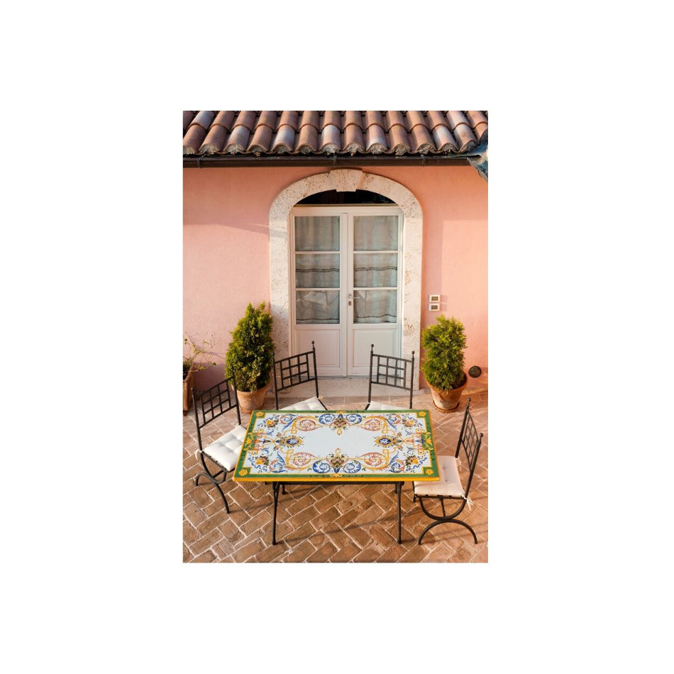 Un tavolo in pietra vulcanica decorata non necessita di alcuna manutenzione, ha un'altissima resistenza agli urti e ai graffi e sopporta senza problemi sole, pioggia, salsedine, sbalzi termici, temperature ben al di sotto dello zero e qualsiasi altro agente atmosferico.