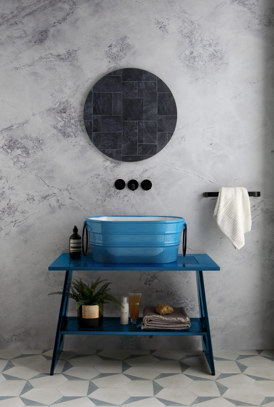 COMPOSIZIONE TINOZZA CIANO SU CAVALLETTO CIANO