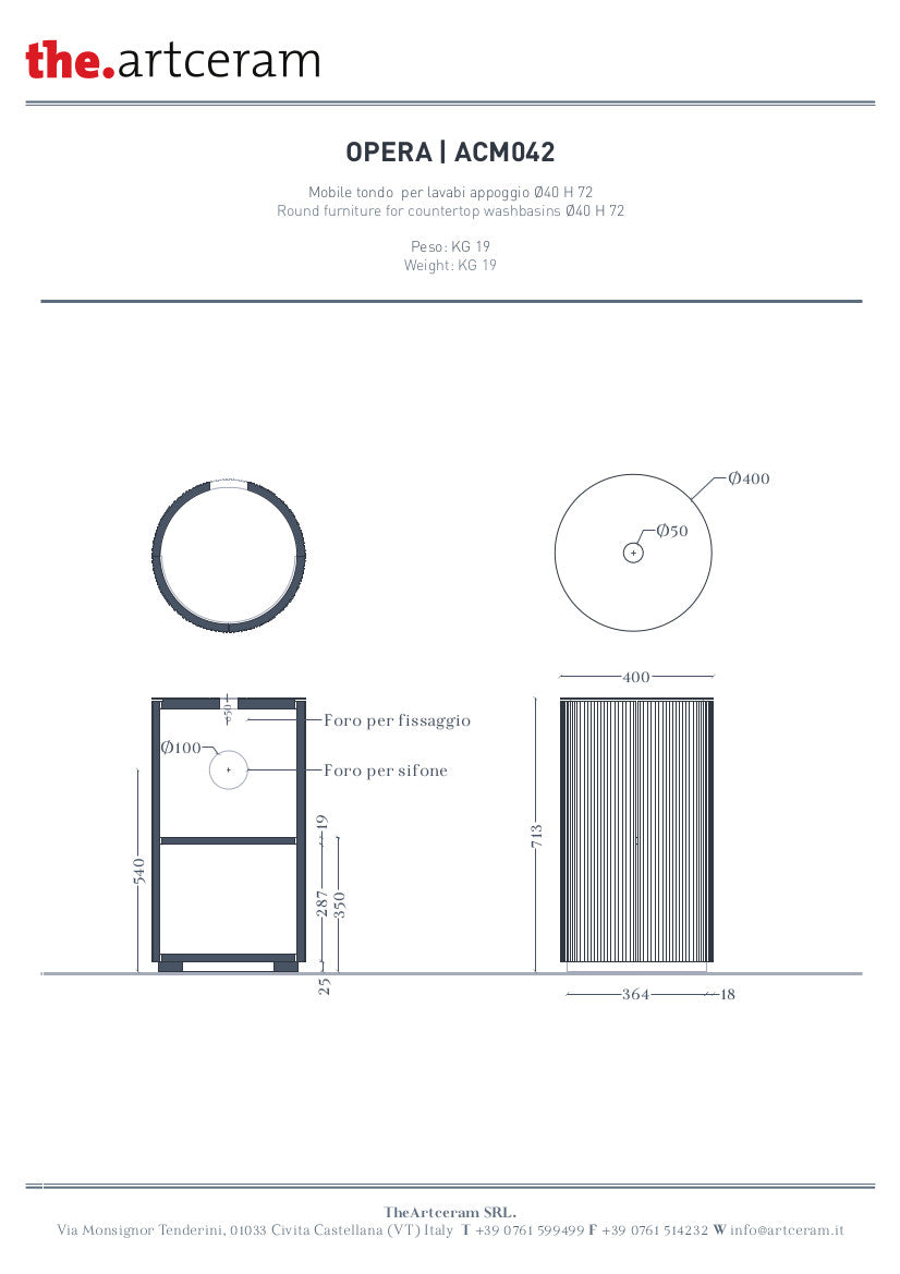 Mobile tondo H72 cm per lavabi da appoggio Opera