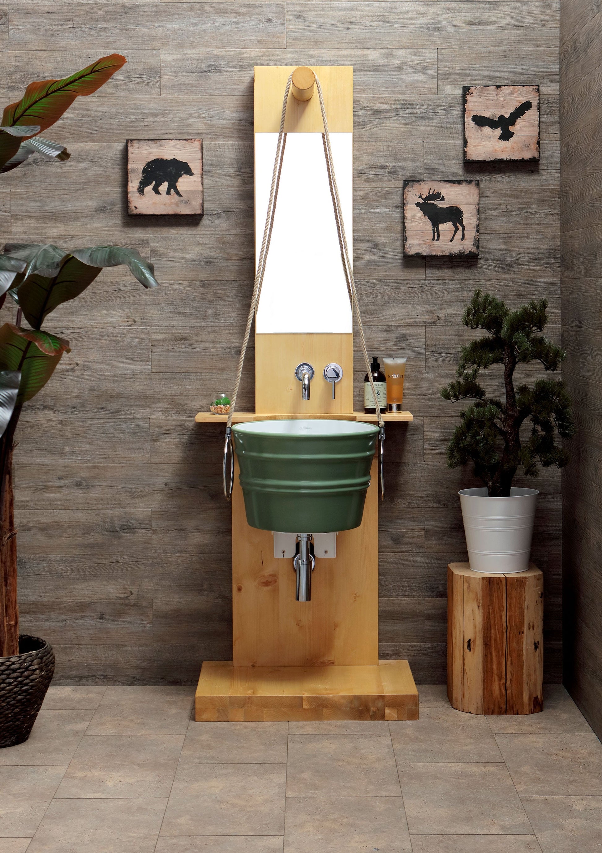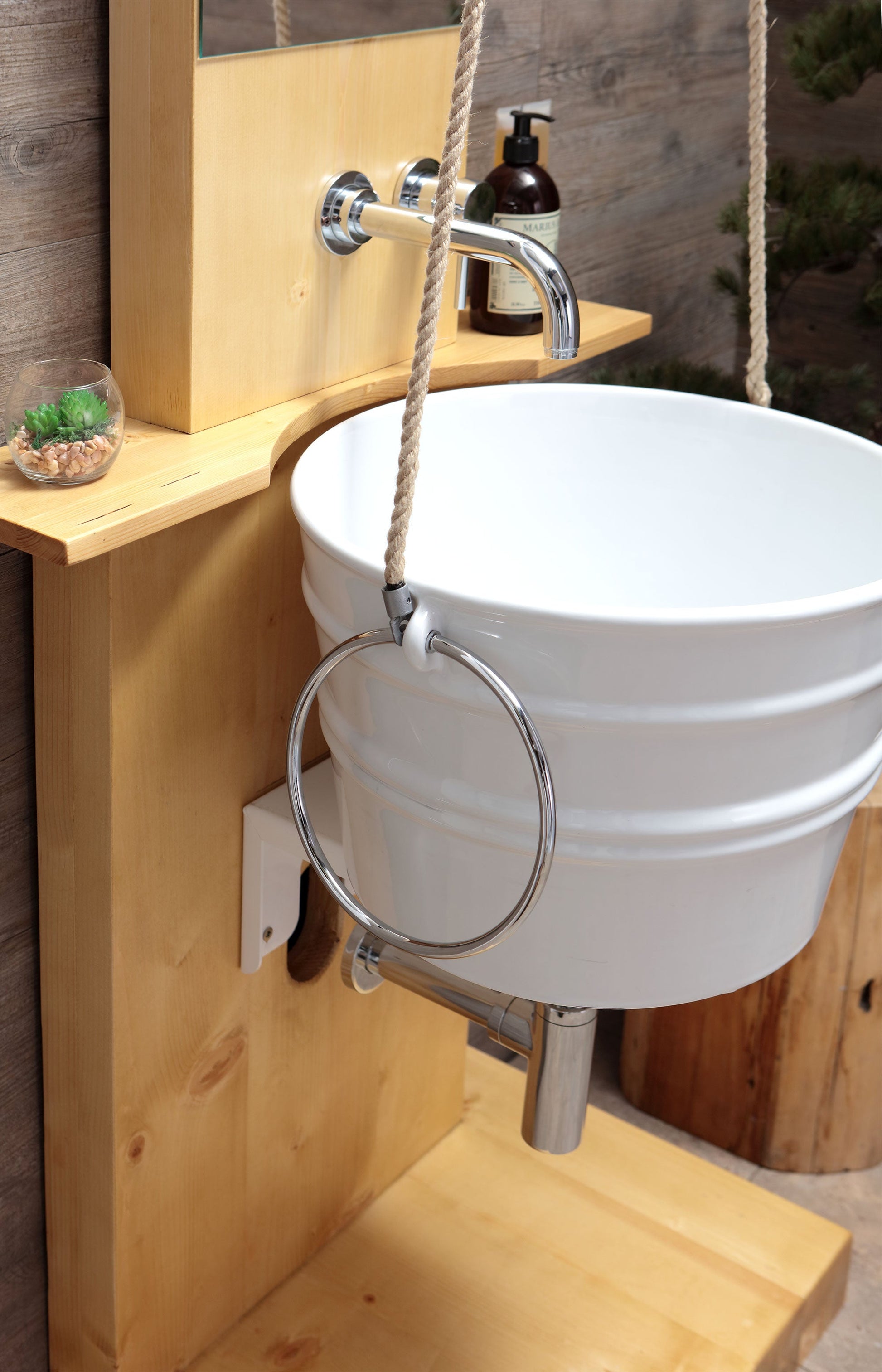 STRUTTURA DA TERRA IN LEGNO CON SPECCHIO POZZO BACILE