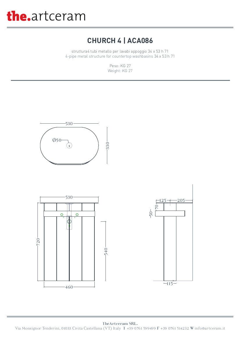 Struttura portalavabo ovale con 4 tubi metallo Church